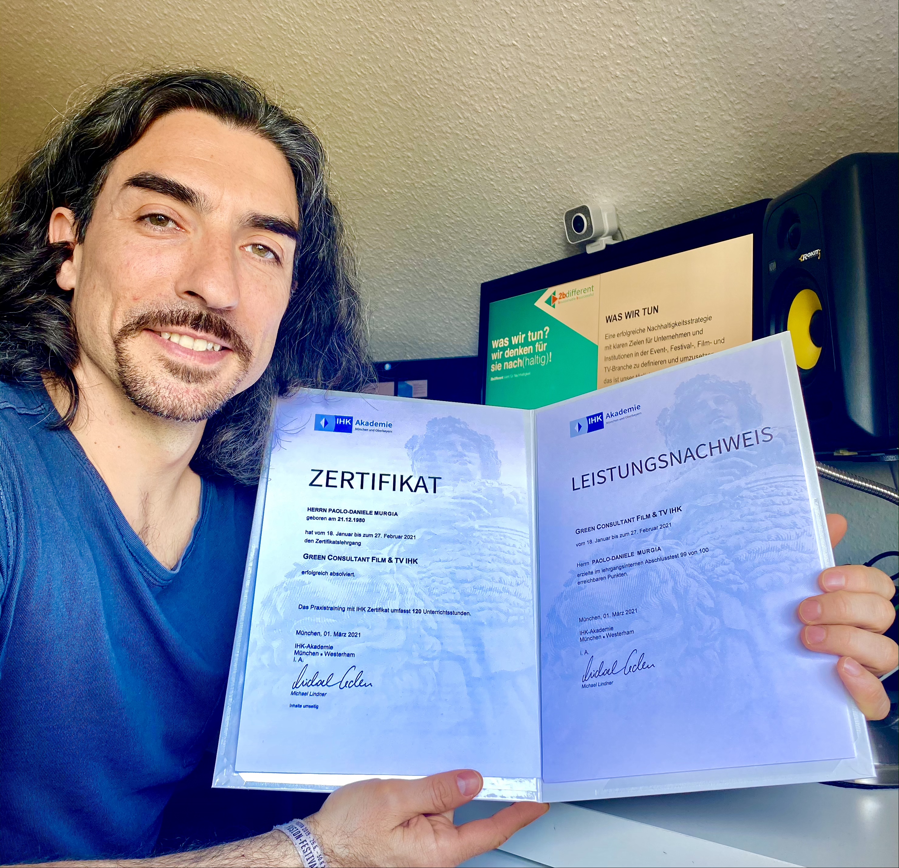 Daniele Murgia hat erfolgreich die zertifizierte IHK Ausbildung zum „Green Consultant Film & TV“ unter Philip Gassmann absolviert. Durch seine langjährigen Erfahrungswerte aus der Corporate-Sicht und der Eventwirtschaft verfolgt Daniele nun mit SUSTAINSHOOTING den holistischen Ansatz. Gemeinsam mit Tobias Wolf hat er SUSTAINSHOOTING entwickelt, um dadurch die Deutsche Filmbranche in puncto Nachhaltigkeit zu beraten und weiter zu entwickeln. Daniele ist ausgebildeter Eventmanager und hat in seiner Zeit beim Pharma-Konzern Roche aus seiner