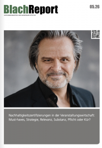 Ein aktueller Beitrag im BlachReport beleuchtet die wichtigsten Nachhaltigkeitsstandards in der Veranstaltungswirtschaft. Branchenexperten ordnen ein, welche Zertifizierungen für unterschiedliche Bereiche der Eventbranche relevant sind und welche strategischen Chancen sich für Unternehmen durch eine Zertifizierung ergeben können.